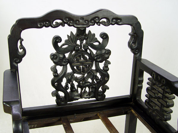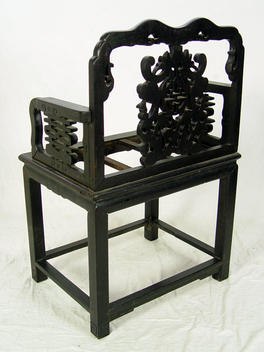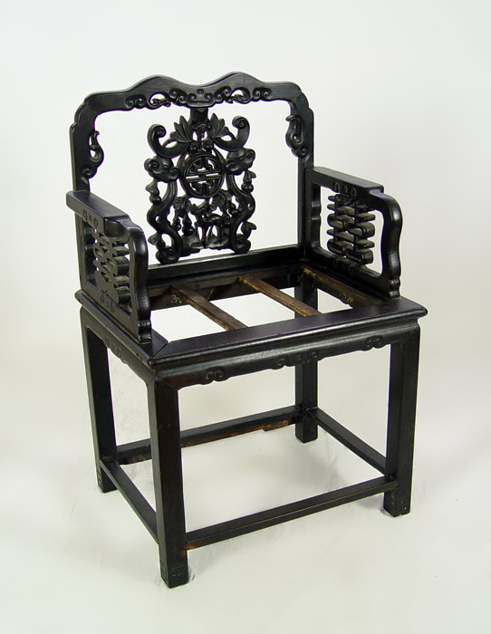 CARVED CHINESE ARM CHAIR: Pierce carved panels to back and sides, 38''h. x 24 1/2''w. x 18 3/4''d., seat 20''h.