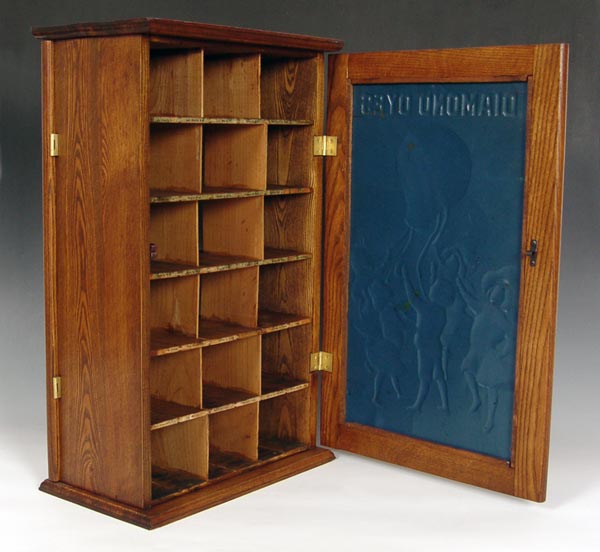 CONDITION: Note replaced hardware, cabinet appears to have been refinished. minor spotting to litho.