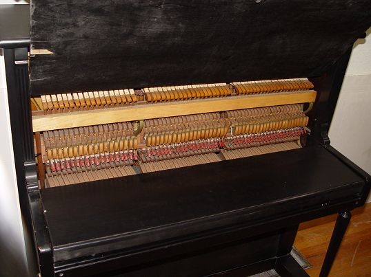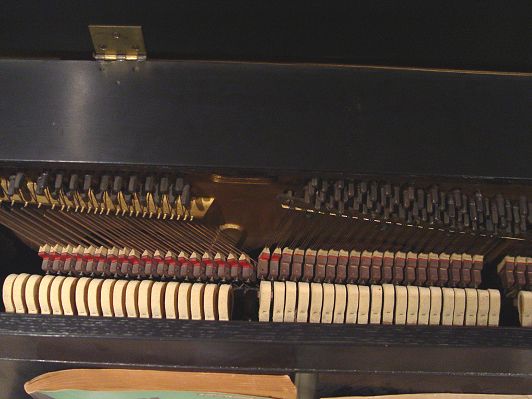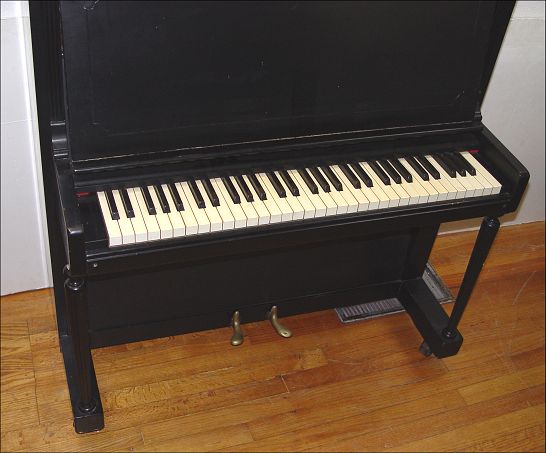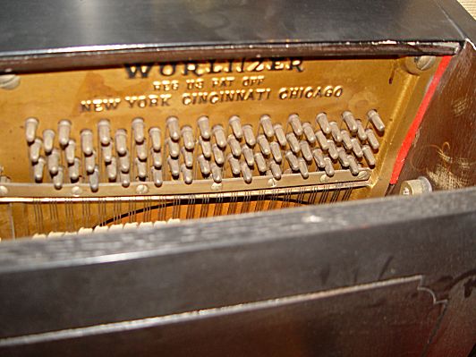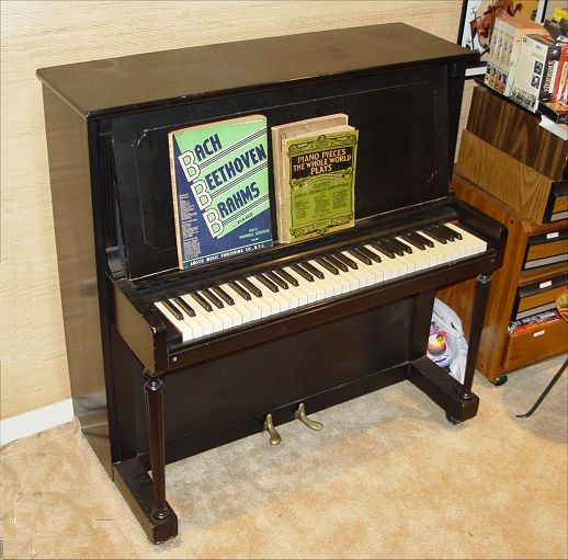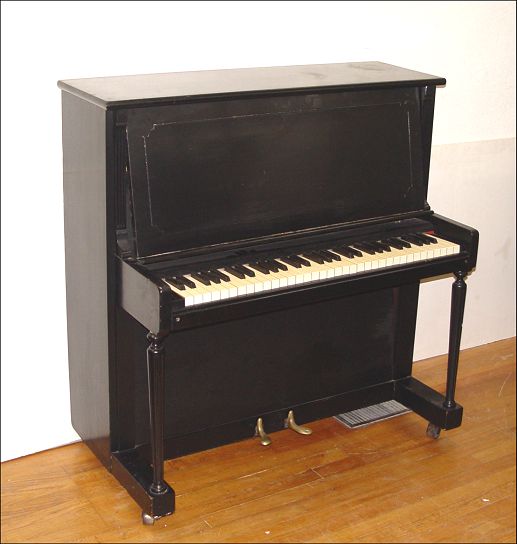 WURLITZER TOM THUMB CHILDS UPRIGHT PIANO: 61 keys, black painted finish case. Measures 41 3/4'' x 40 1/2'' x 21 3/4''.