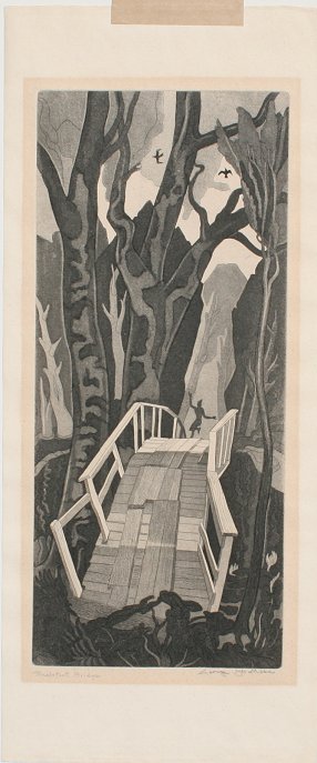MESS, George Jo, (American, 1898-1962): ''Reelsfoot Bridge'', Aquatint, 17 1/2'' x 7 1/2'', penciled signed & titled, matted, unframed