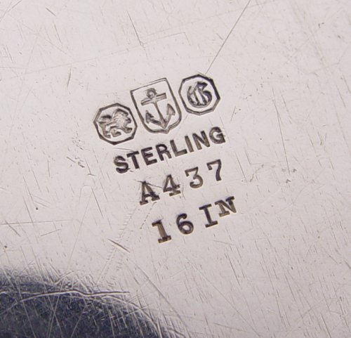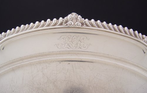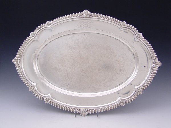 LARGE STERLING GORHAM TRAY: Pattern A437, monogrammed. Inscribed 1904 on base. 17 1/2'' x 12 3/8''. Approx 42.9 troy oz.