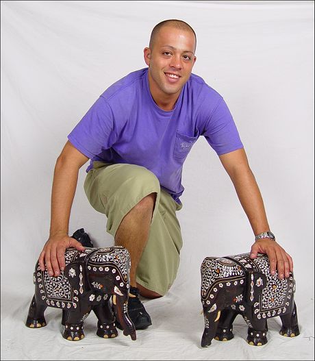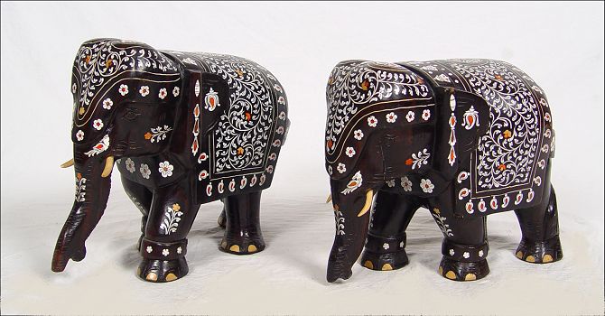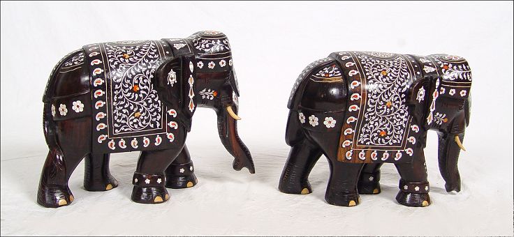 PAIR CARVED BONE INLAID ELEPHANTS: 12'' h. x 14'' x 9'', 21 lbs each