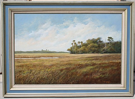 ADAMSON, Neil, (American, 20th Century): Florida Wetlands Landscape, OIL/Board, 24'' x 36'', signed, framed, 31 1/2'' x 43 1/2''.