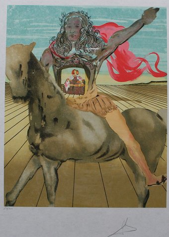 ''CHEVALIER SURREALISTE'' LITHOGRAPH AFTER SALVADOR DALI: 29'' x 21'', pencil signed, numbered 57/300, Atelier Dumas blindstamp lower left, DALART COPYRIGHT lower right, hardcover folio, 29 1/2'' x 22''.