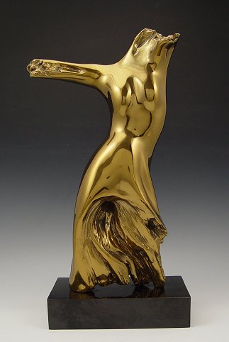 DANCING POLISHED BRONZE ABSTRACT FEMALE TORSO: 17'' h., incised signature, fabricated plinth.