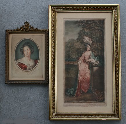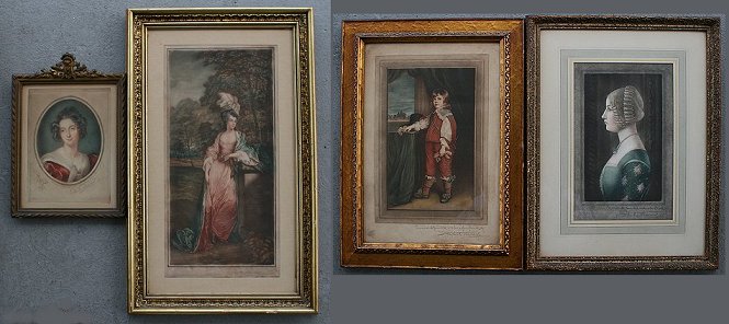 4 SAMUEL ARLENT EDWARDS MEZZONTINTS IN ORIGINAL FRAMES: Portrait of a young woman, 8 3/4'' x 6 3/4'' sight size, gilded gesso frame 11 1/2'' x 8 1/8''; ''Duchess of Rutland'', after Sir Joshua Reynolds, sight size 16 1/8'' x 8'', gilded frame, 21 1/2'' x 13''; ''Francesca'', after Ghurlandio, 12 1/2'' x 8 1/8 sight size, gesso frame, 20 1/2'' x 16''; ''Charles II of England'', after Van Dyke, 16 1/4'' x 11 1/2'' sight size, gilded gesso frame, 20 1/2'' x 15 1/2''. All prints are pencil signed, in original frames, minor condition problems due to age, very good overall, sold as is.