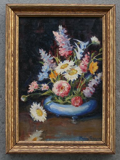 CORRIE, Miriam, (American, 20th C.): Still Life of Flowers, OIL/Canvasboard, 8 1/2'' X 7 1/4'', signed, framed, 12'' x 9''.