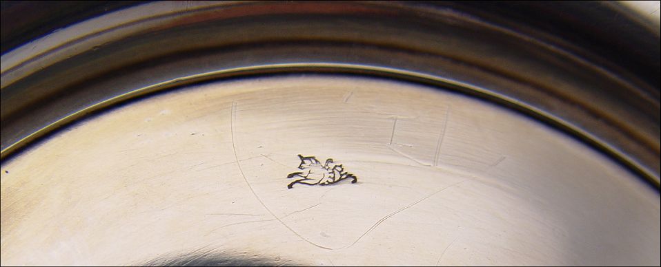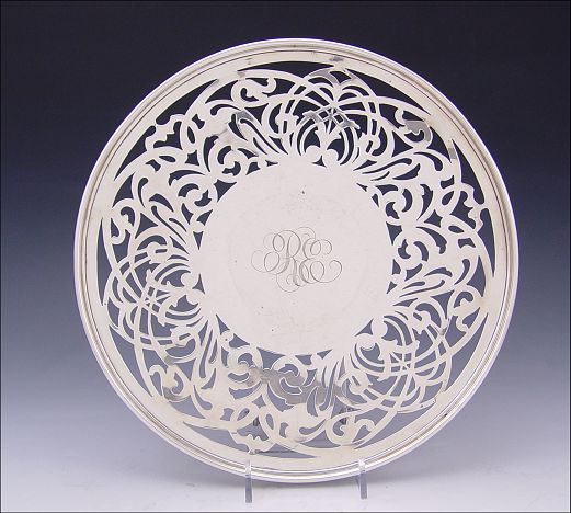 MAUSER STERLING RETICULATED TRAY: Openwork design tray on center foot, monogrammed. 1'' high x 10 1/2''. Approx. 10.2 troy oz.