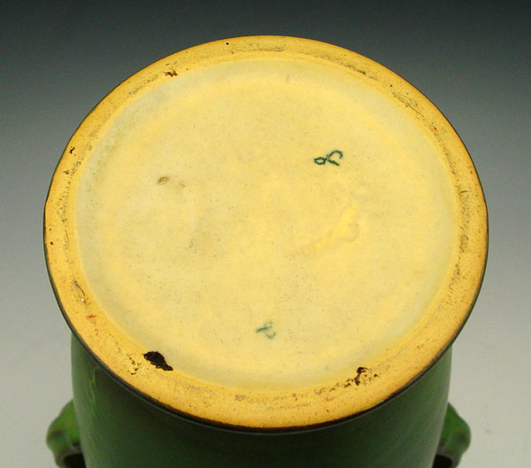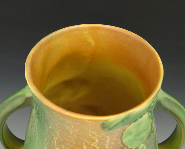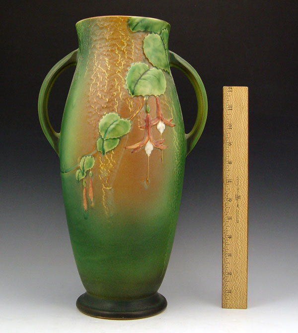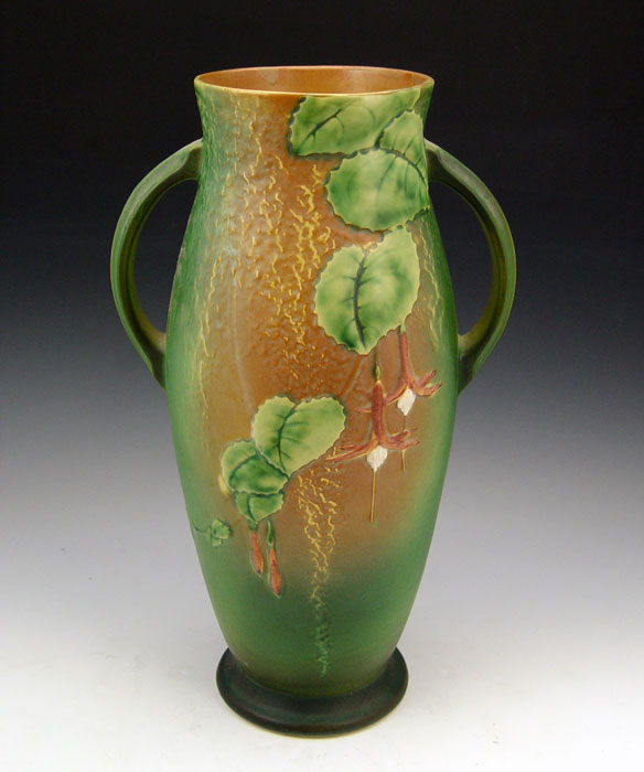 ROSEVILLE POTTERY FUSCHIA VASE: Green - Brown, 16 1/2'' tall.
