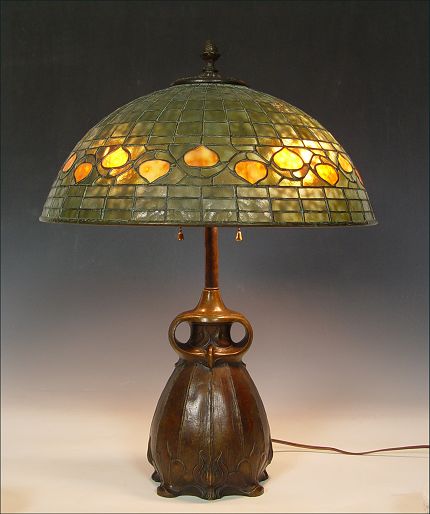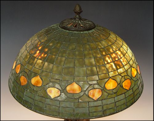 HIGH QUALITY TIFFANY STYLE ACORN LAMP: In the classic Acorn pattern, bronzed base. 24'' h. x 18'' dia