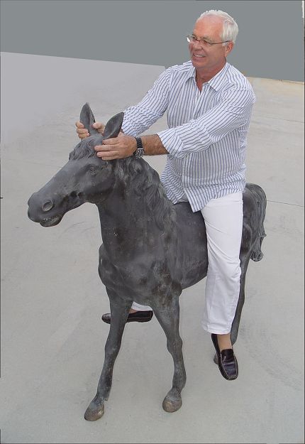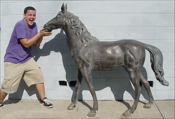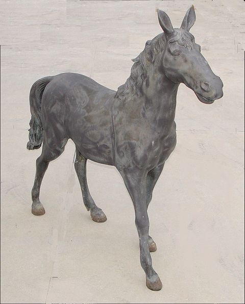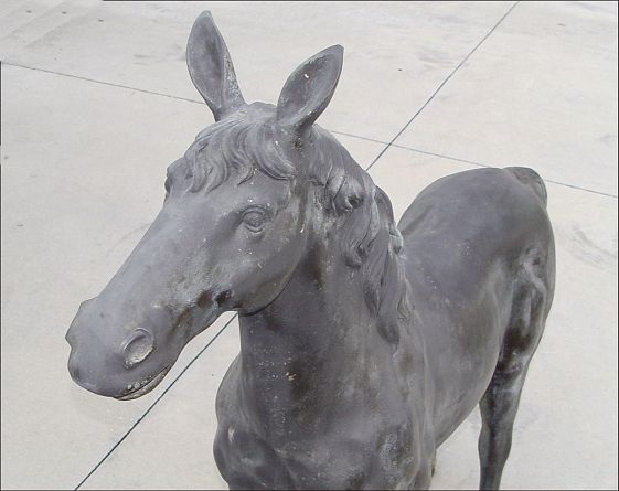 LARGE BRONZE HORSE: Measures 62 1/2'' h. x 69'' x 14''.