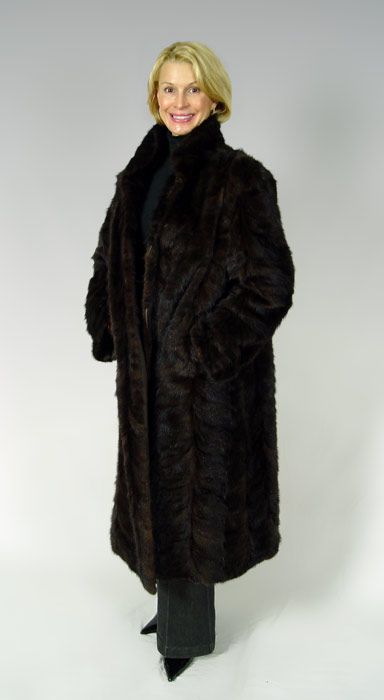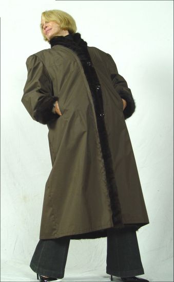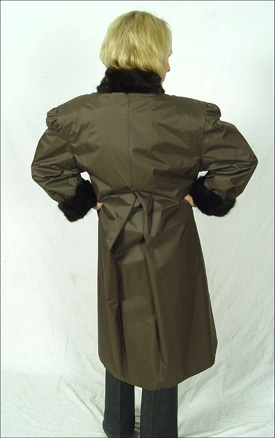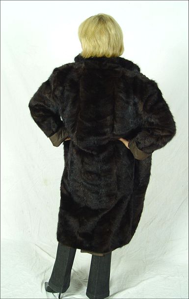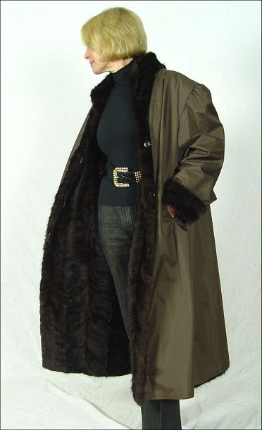 FULL LENGTH REVERSIBLE MINK RAIN COAT: 50'' length, 22'' shoulder to shoulder, sleeve is 25 1/2'' length.