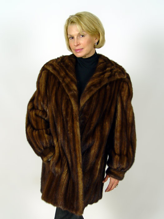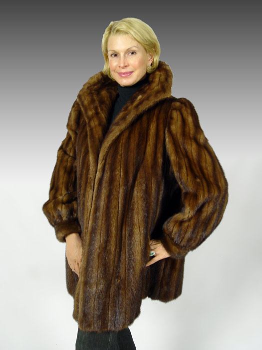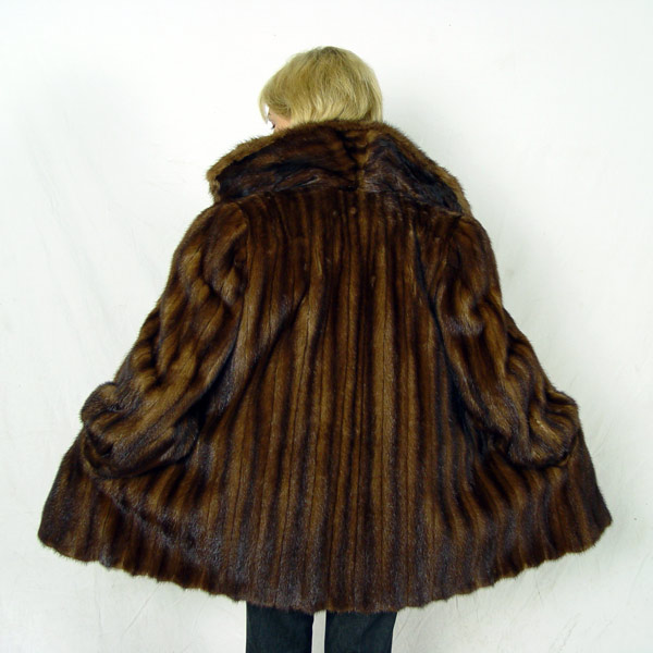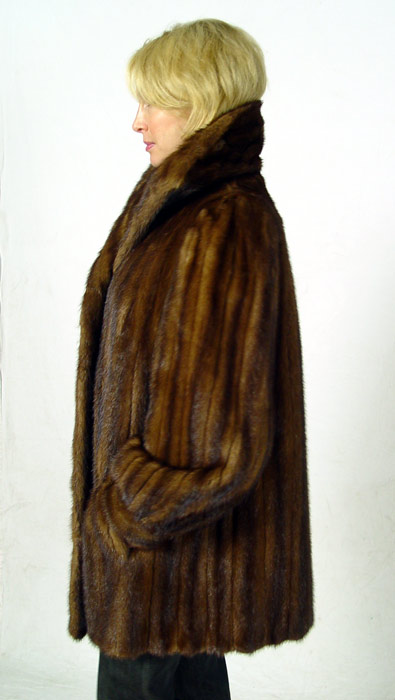 CHESTNUT MINK FUR CAR COAT: Length 33'', shoulder to shoulder 20 1/2'', sleeve 25''. Full sleeves with fitted cuff, full collar. no pockets.