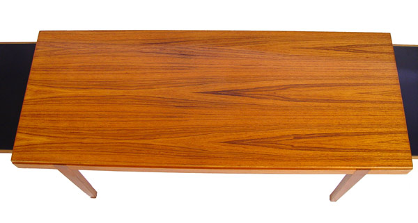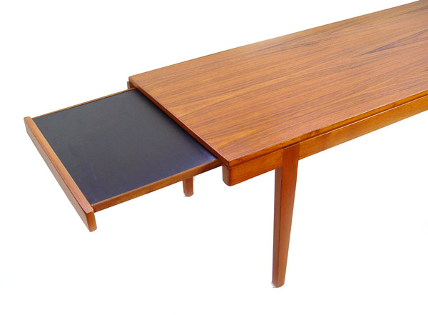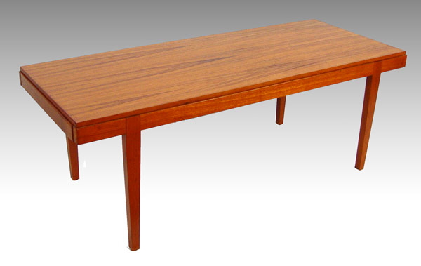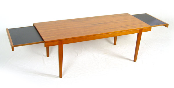 SLEEK DANISH MODERN COFFEE TABLE: With slide out heat protected extensions. 20''h x 22'' x 55''.