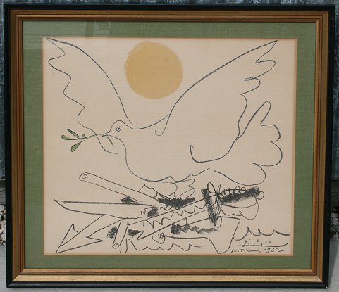 DOVE LITHOGRAPH AFTER PICASSO: 20 1/2'' x 23 3/4'' sight size, framed, 28'' x 34'', signed in the plate and dated '62.