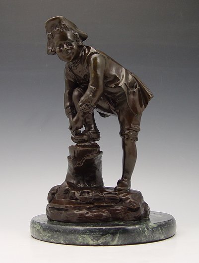 COINCHON, Jacques Antoine, (French, 1814-1881) Young Skater, Bronze, signed, Height, 10.25'', incised signature, marble plinth .