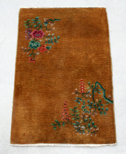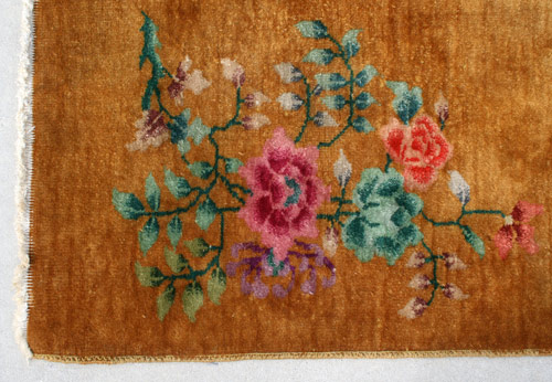 VINTAGE CHINESE DECO RUG: Approx 3'1'' x 4' 8'', gold ground