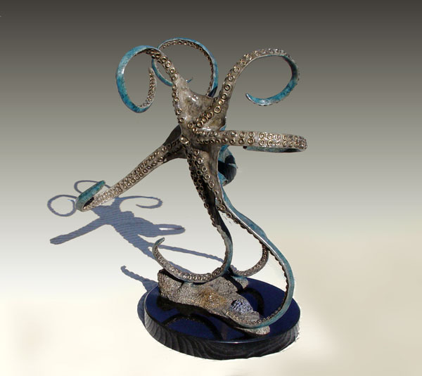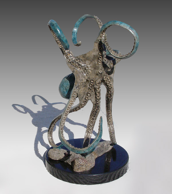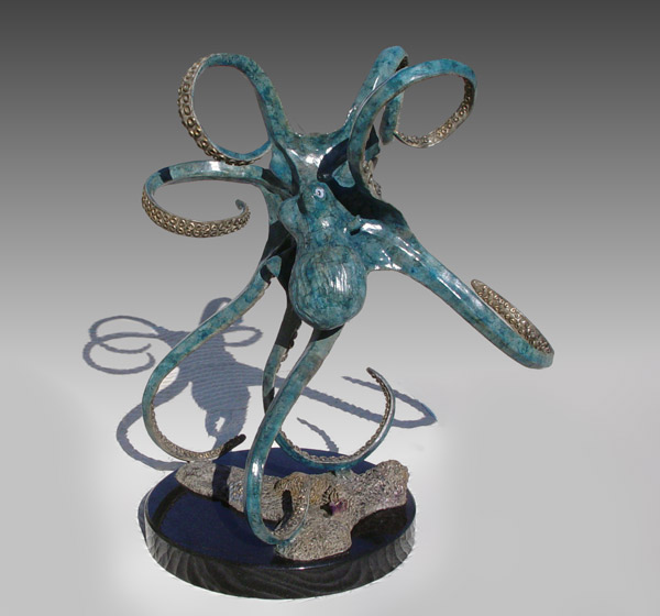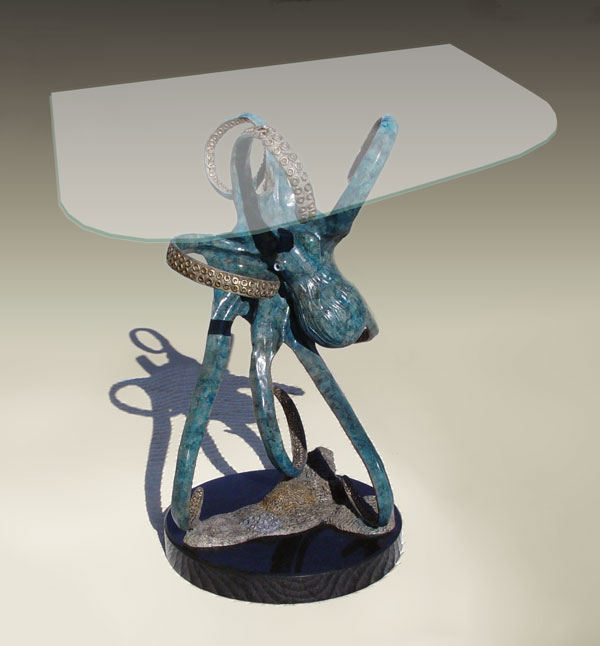 TOWNSEND, John, (American, 20th C.): ''Octopus'', Patinated Bronze, 24 1/2'' h., 14'' w., 18'' d., signed and numbered 15/299, American Bronze Fine Art Foundry, approx. weight 96 lbs., affixed to marble plinth, sold with glass top for use as table.