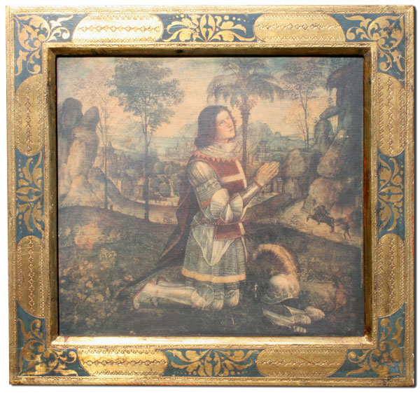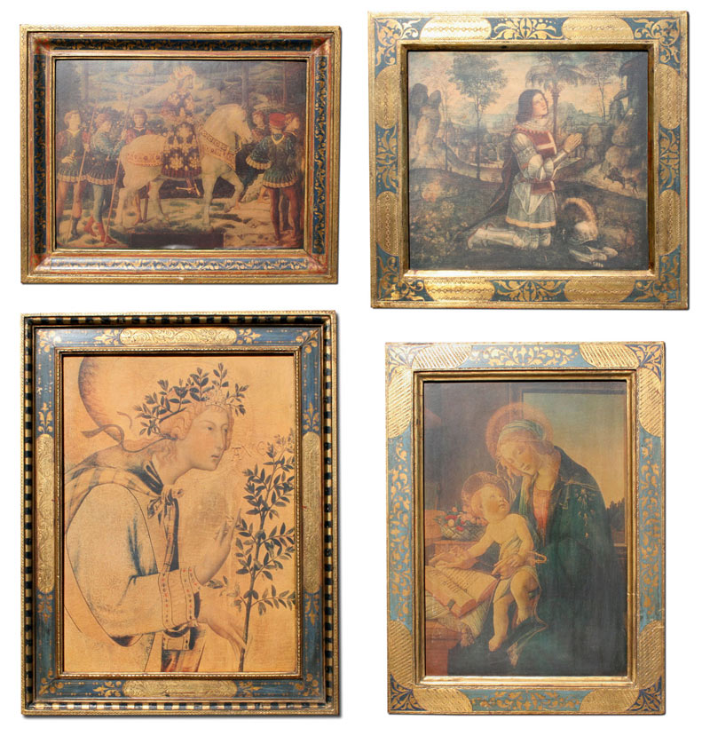 4 PIECE GILT CARVED AND EMBOSSED ITALIAN FRAME COLLECTION: Each measuring approximately 19'' x 15'' h., circa 1920.