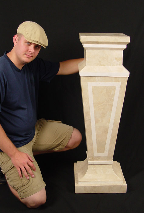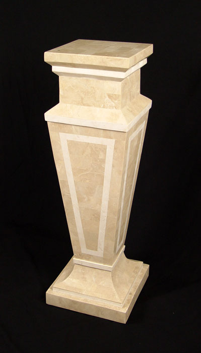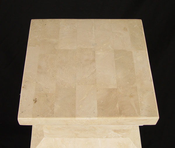 TRAVERTINE DECORATIVE PEDESTAL STAND: 42'' tall, the square top is 12'' square, the base 14'' square.