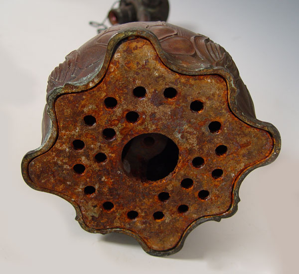 PITTSBURG LAMP COMPANY LAMP BASE: Three socket pull chains. Unwired, ready for restoration. 24''h. overall.
