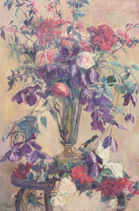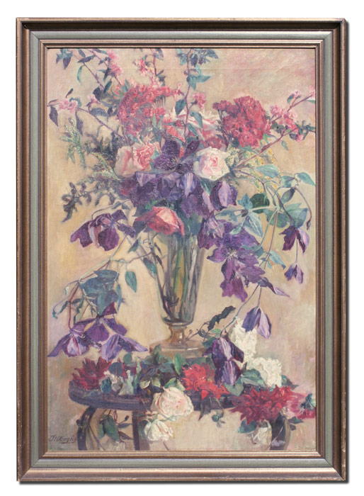 UBAGHS, Jean, (Belgian, 1852-?): Floral Still Life, OIL/Canvas, 36'' x 24'', signed, worn newer frame, 41'' x 29''.