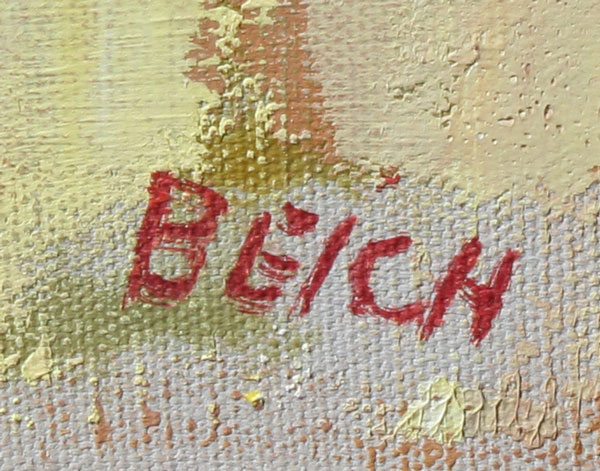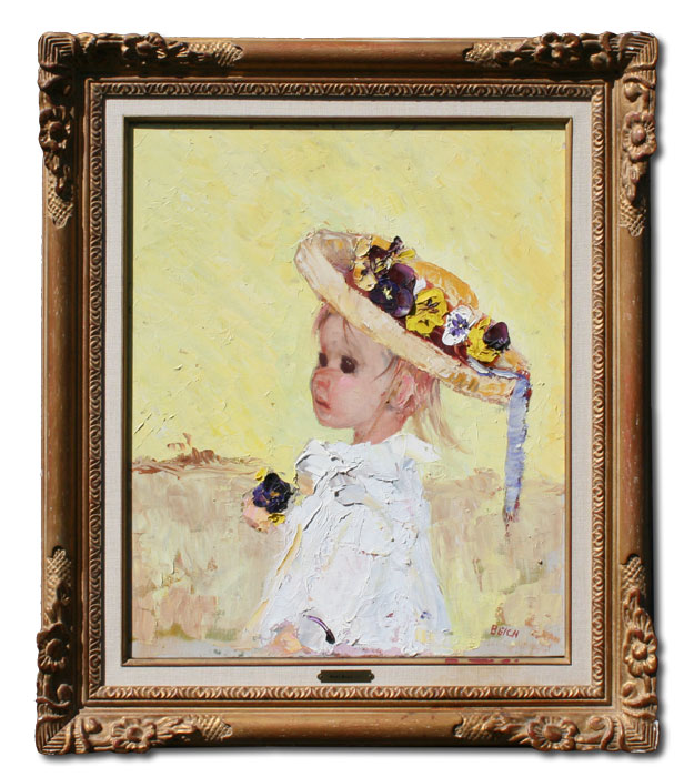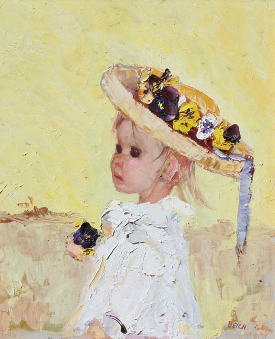 BEICH, Mary, (American, 1917-2002): Young Girl with Flower Hat, OIL/Canvas, 24'' x 20'', signed, carved and gilded gesso frame with wear, 32'' x 27''.