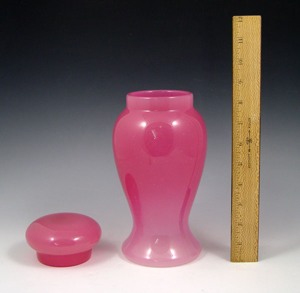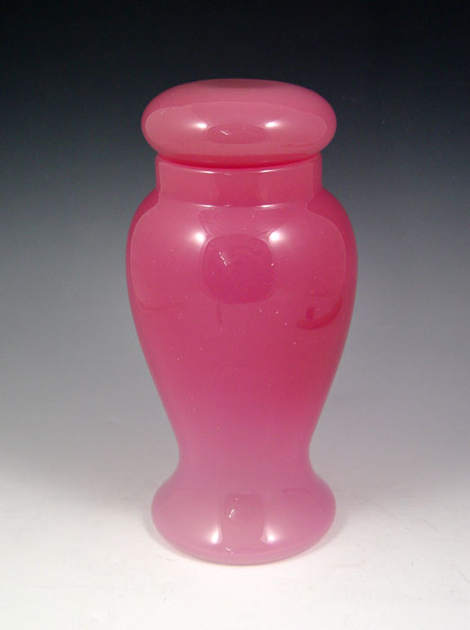 STEUBEN ROSALINE COVERED VASE: Pink with flecks of white. Unsigned, 10'' h. x 4 1/2'' dia.