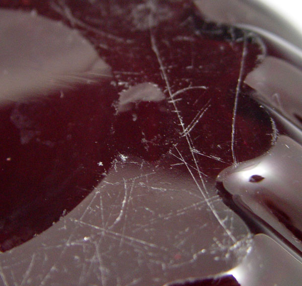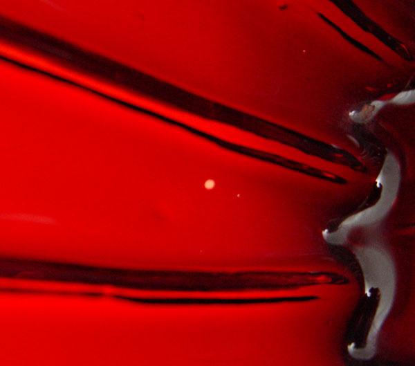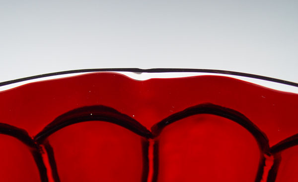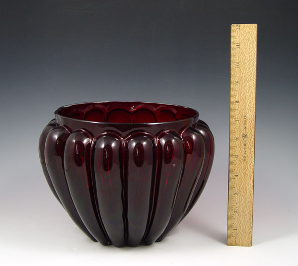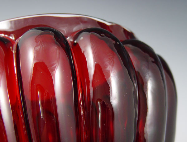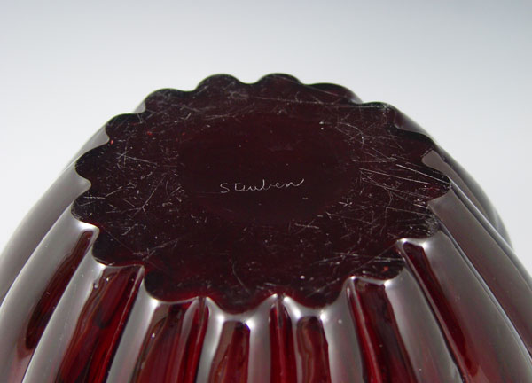 STEUBEN SELENIUM RED VASE: Melon ribbed form, 7 1/4'' h. x 10'' dia.