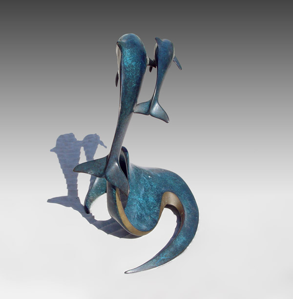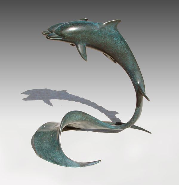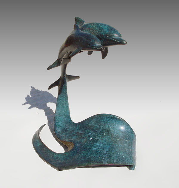 PATINATED BRONZE OF DOLPHINS SIGNED WYLIE: 11'' h, signed, titled ''Newborn'', dated 1989, numbered 85/450.