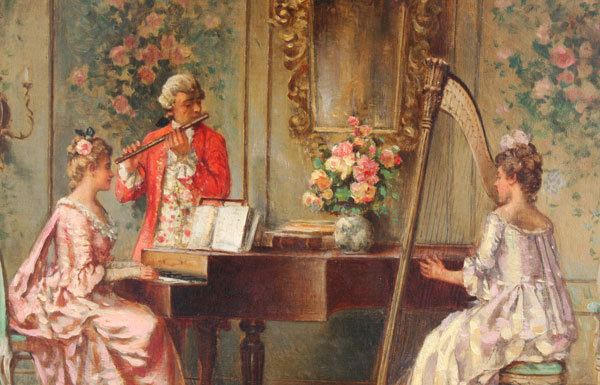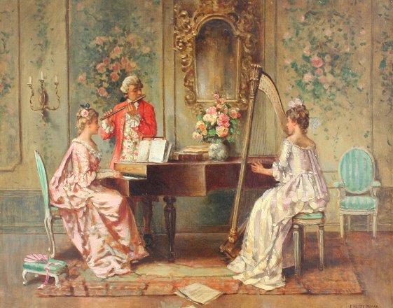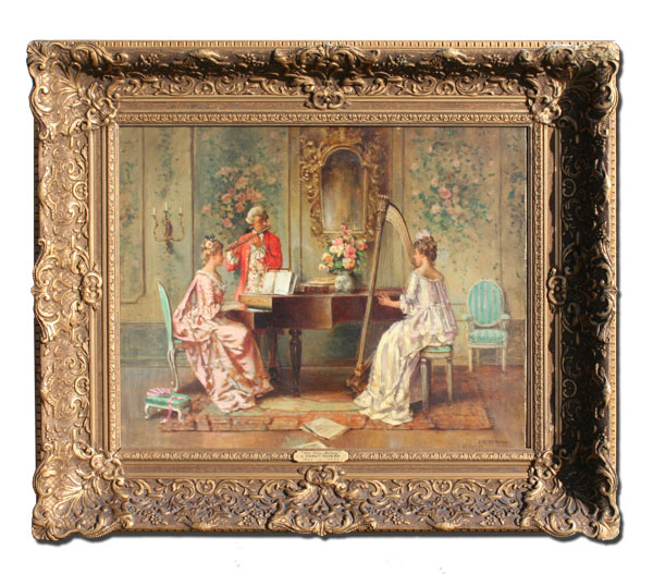 MORAN, Edward Percy, (American, 1862-1935): ''Old Time Melody'', OIL/Canvas, 15 1/2'' x 19'', signed, carved and gilded period frame with repair, 23'' x 27''.