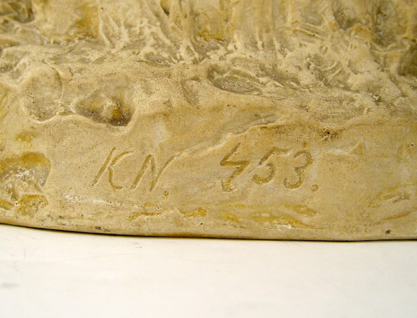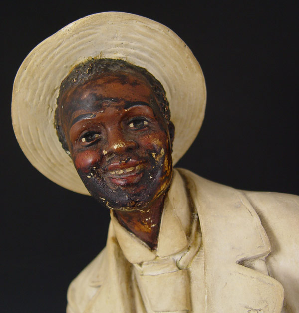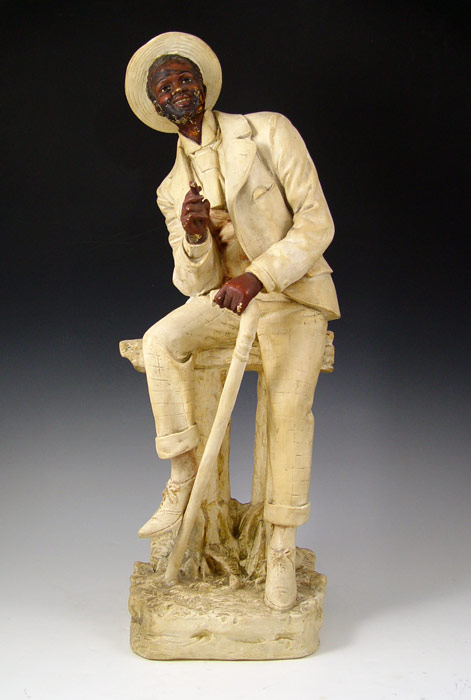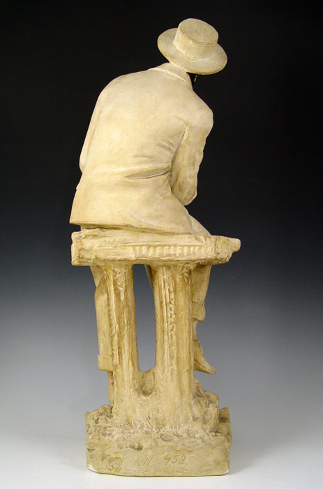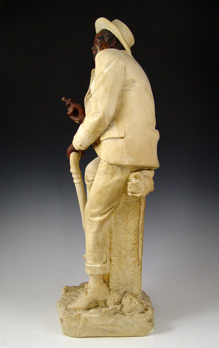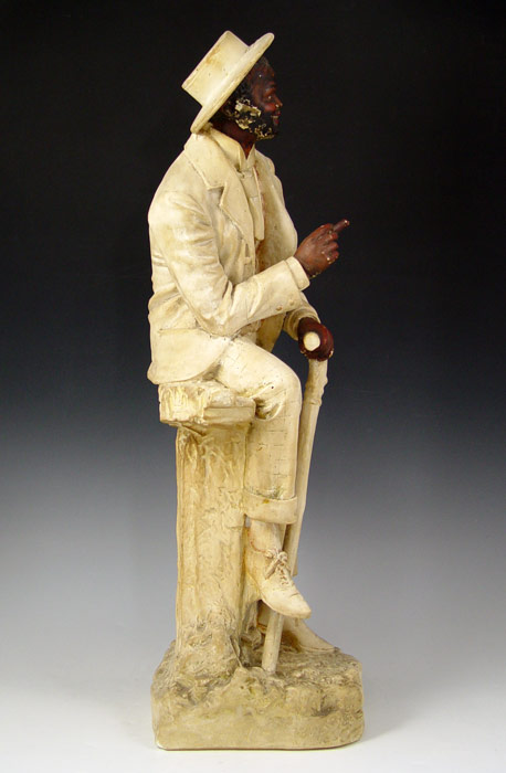 19TH CENTURY ''UNCLE TOM'' PLASTER SCULPTURE: Man seated with cigar. Marked KN 753, from a old Tampa cigar factory, 22'' h.