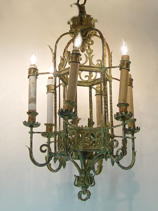 MIXED METAL GOTHIC STYLE CHANDELIER: From the Soreno Hotel in St. Petersburg, circa 1923. 37 1/2'' h. x 21'' dia.