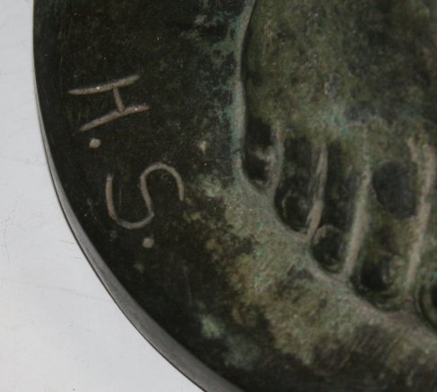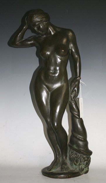 LOST WAX METHOD SIGNED STANDING NUDE FEMALE BRONZE: 24'' h., monogrammed H.S., age unknown.