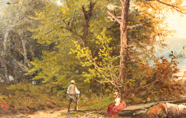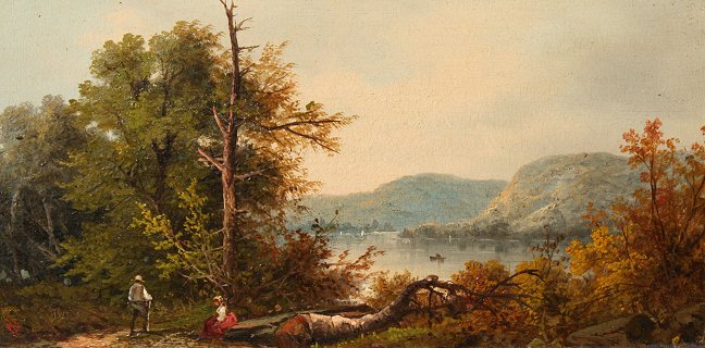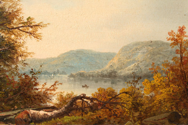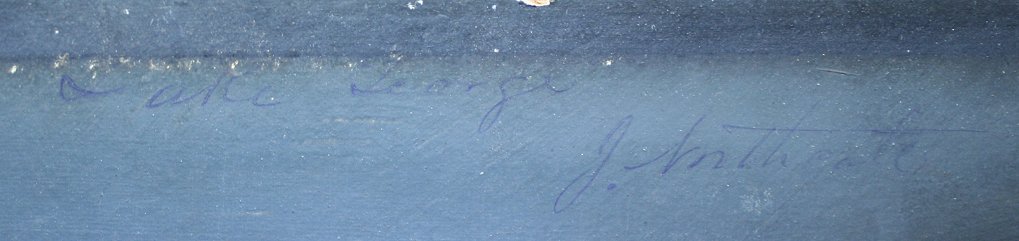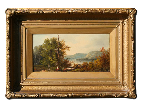 NORTHCOTE, James, (American, 1822-1904): ''Lake George'', Oil/Board, 6 3/4'' x 11 3/4'', monogrammed, titled and signed verso, period gilded gesso frame with gold paint and cracking/wear, 13 1/2'' x 20 1/2''.