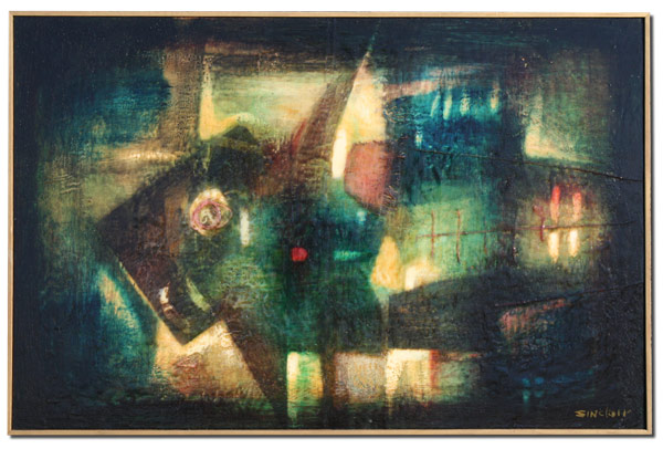 SINCLAIR, Alfredo, (Panama, 1915-): Untitled Abstract Composition, Mixed Media Oil/Collage on Wood, 24'' x 36'', signed, framed, 24 1/2'' x 37''. From the collection of former US Diplomat and State Department official John E. Karkashian.
