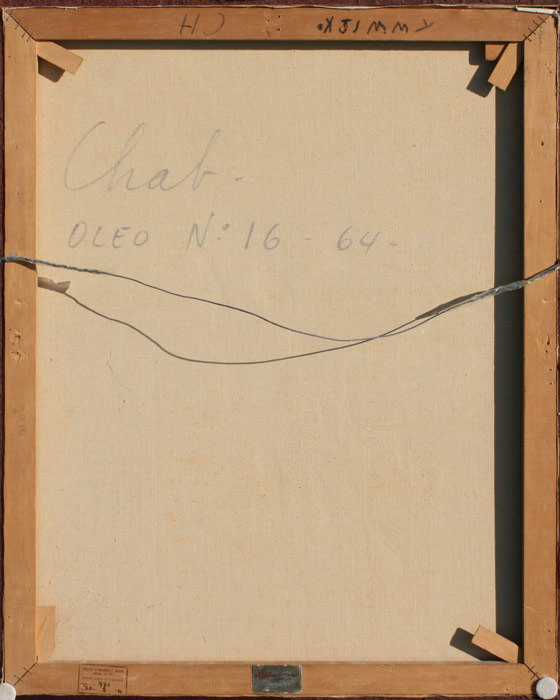 CHAB, Victor, (Argentina, 1930-): Untitled Abstract, Oil/Canvas, 32'' x 25 1/2'', signed verso and dated '64, marked ''Oleo No. 16 64-'', framed, 32 1/2'' x 26''. Exhibited at the Pan American Union, Washington, D.C., his first exhibit in the United States. From the collection of former US Diplomat and State Department official John E. Karkashian.