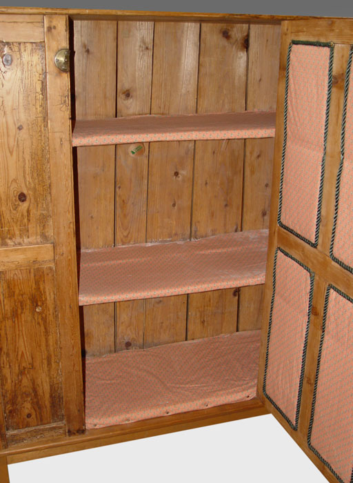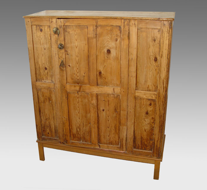 JIM WAGNER SPANISH COLONIAL SOUTHWEST SINGLE DOOR PINE CUPBOARD: Taos, New Mexico. Single door, interior shelf. 58'' h x 49'' x 17 3/4''.