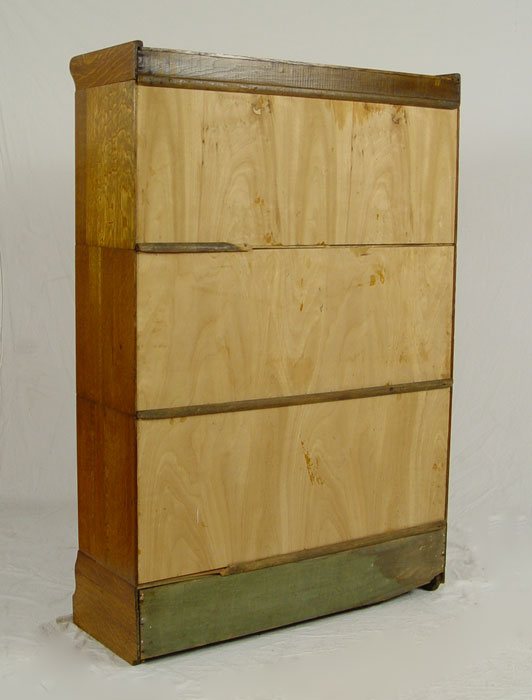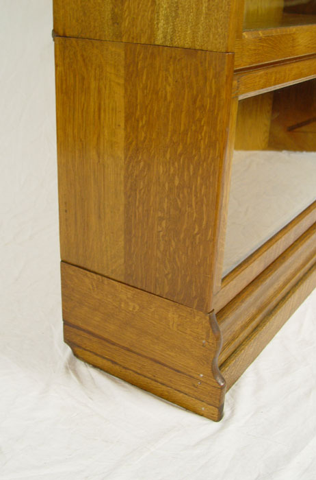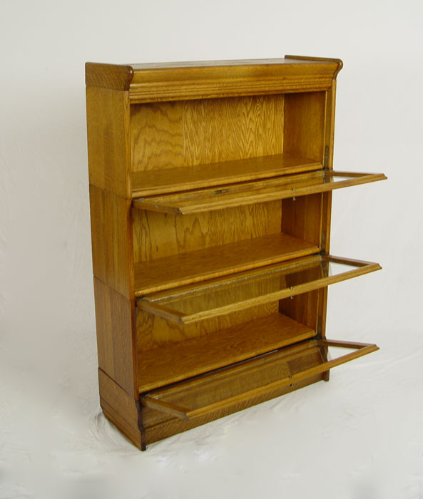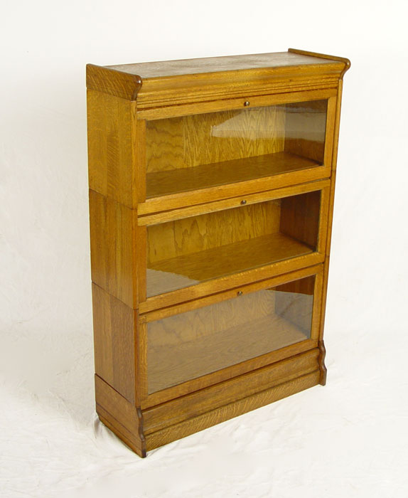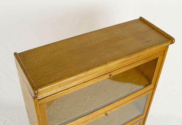 3 STACK LAWYERS BARRISTER BOOKCASE: Quarter sawn golden oak. Drop down glass doors with brass hardware, 34'' wide, 12 1/2'' deep, 51'' tall.
