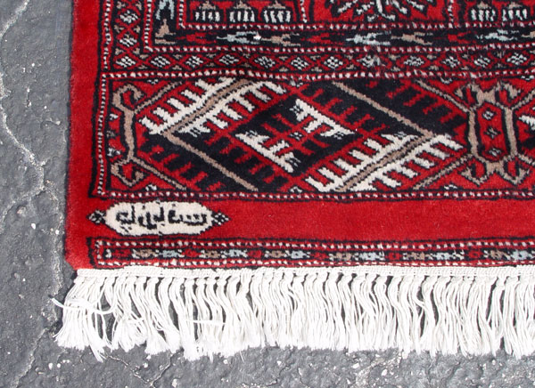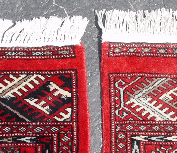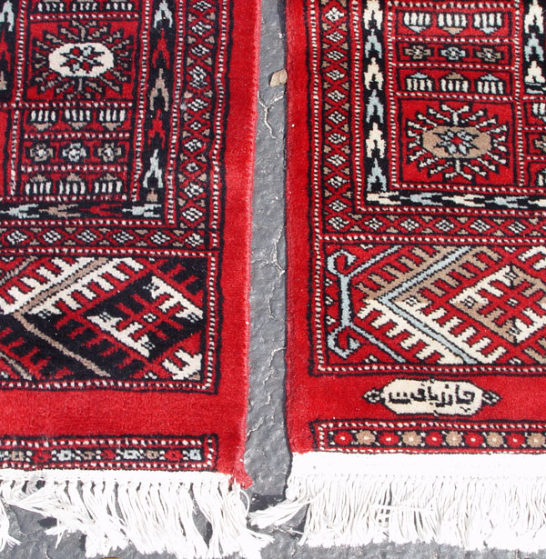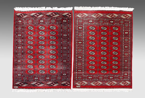TWO SIGNED BOKHARA RUGS: Each approx 7'3'' x 4'3''.