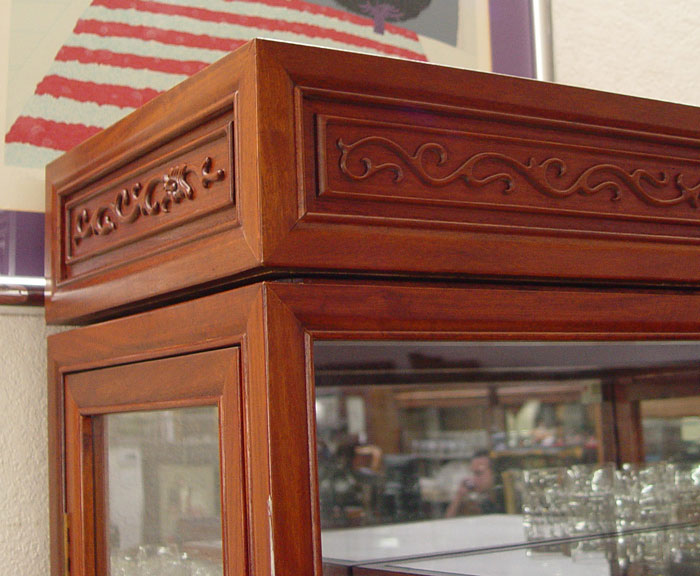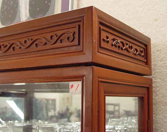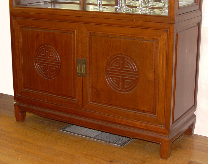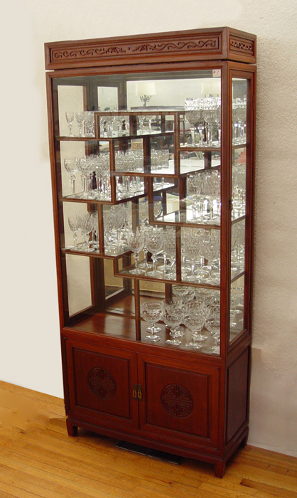 CHINESE ROSEWOOD DISPLAY CABINET: Glass front with side opening doors. Interior with staggered shelves. 80'' x 3'' x 14''.