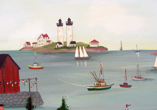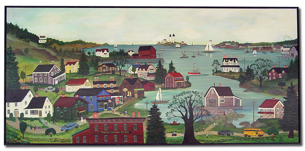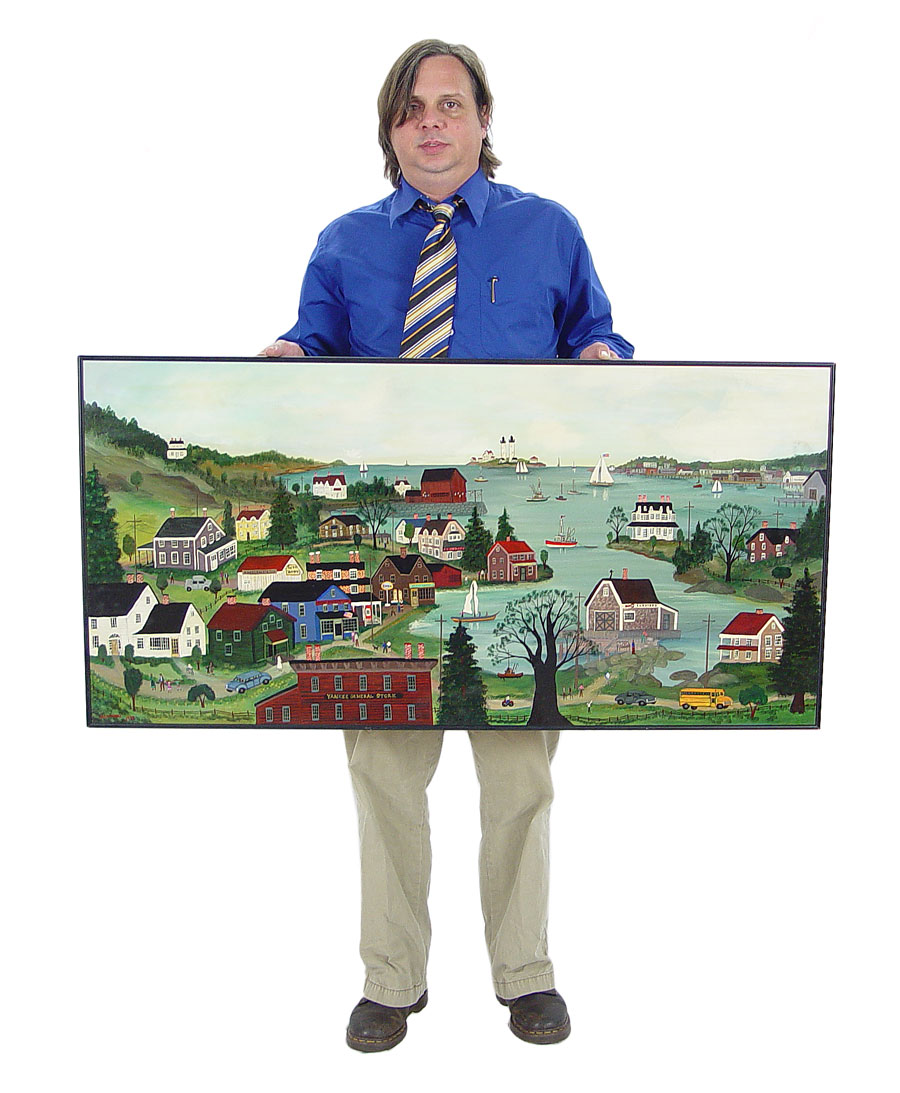 MUNRO, Janet, (American, 1943-): View of Cape Ann, Gloucester, Mass, OIL/Board, 24'' x 48'', signed and dated '95, framed, 25'' x 49'', bio verso.