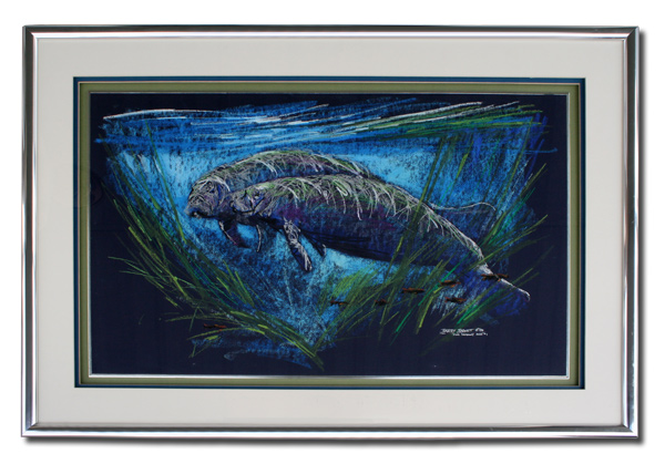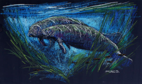 BARNETT, Barry, (American, 20th C.): ''Fine Company Study #1'', Manatees, Pastel/Marker, 20'' x 32'', signed, titled and dated '84, fine frame and matting, 29'' x 42''. Celebrated Florida artist, this Barnett was in the Hughes Foundation Collection.