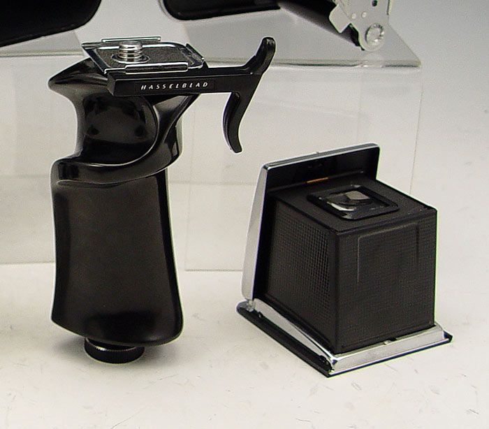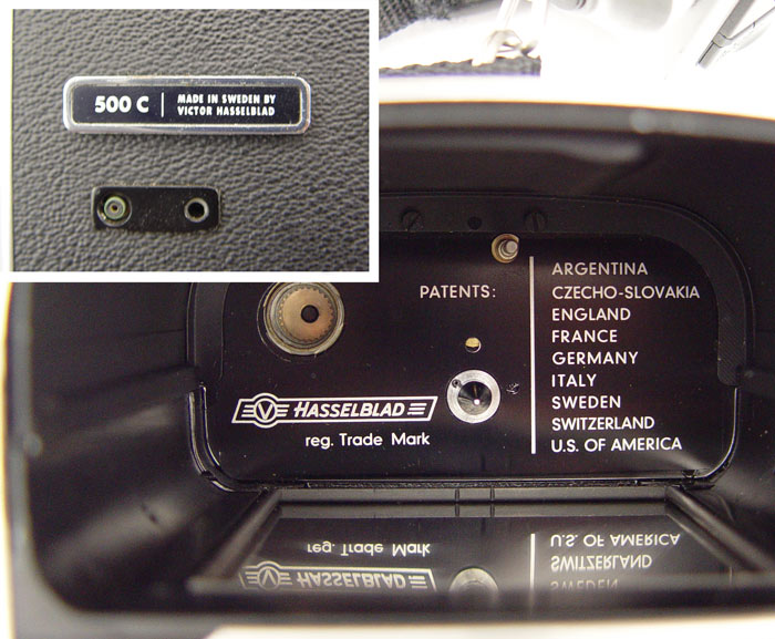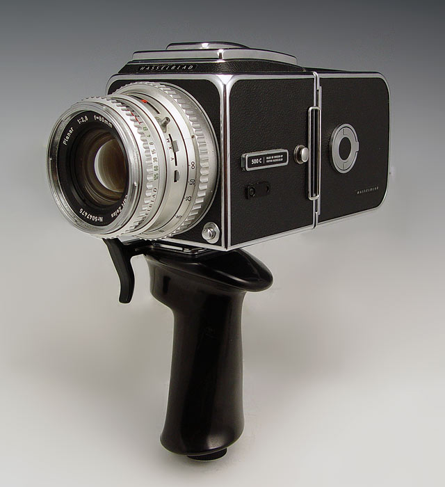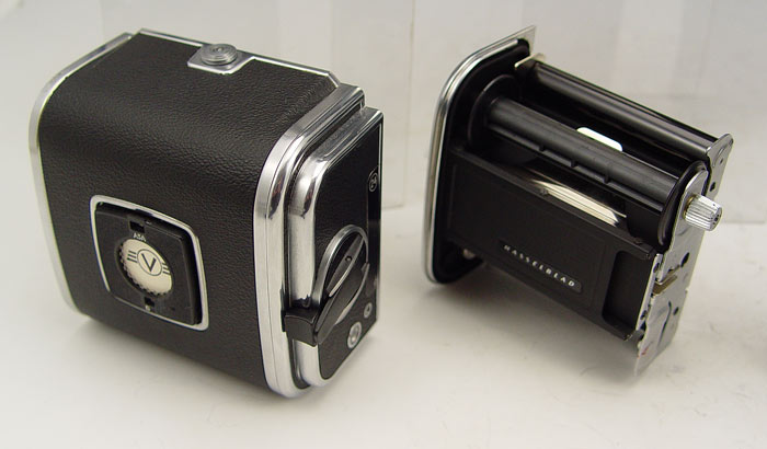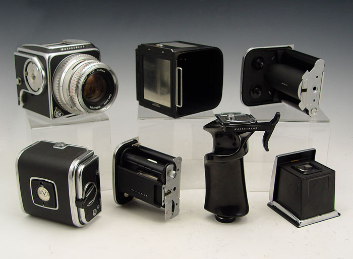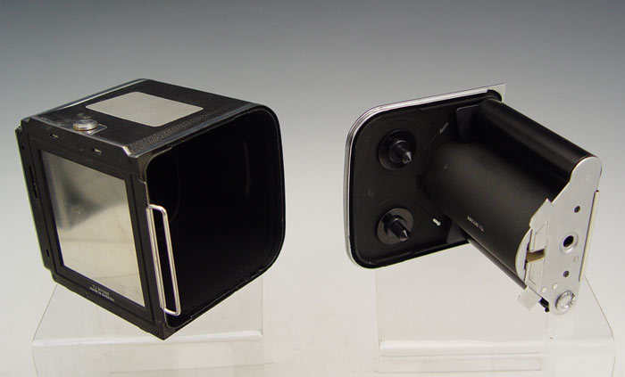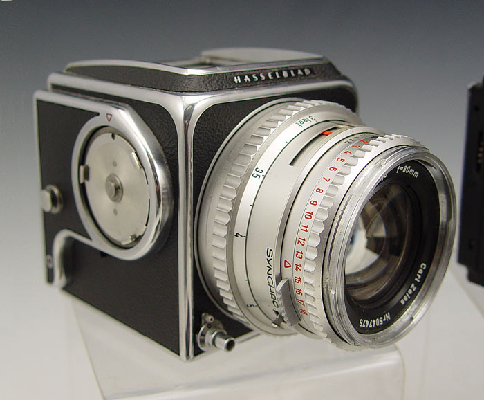 HASSELBLAD 500 C CAMERA WITH MAGAZINE: Made by Victor Hasselblad, comes with Hasselblad Planar 1:2,8 lens, handle and spare film back.