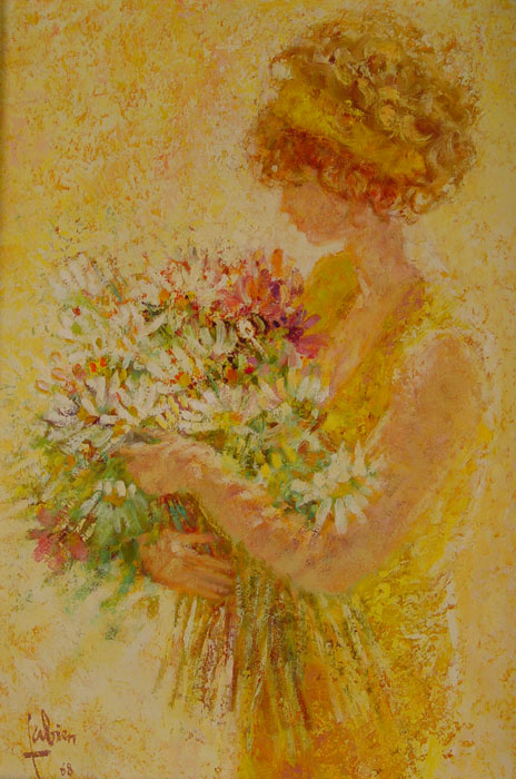 FABIEN, Louis, (French, 1924): Girl with Flower, OIL/Canvas, 18'' X 13'', signed, DATED '68, framed, 27 1/2'' x 23''.