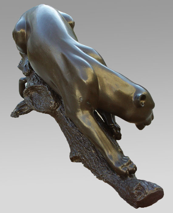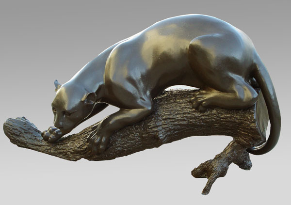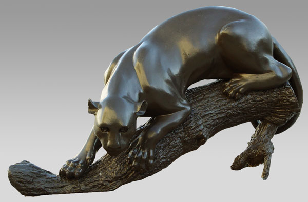 BRONZE MOUNTAIN LION OR PANTHER: Later painted finish. Measures 25'' h. x 48'' x 18''.