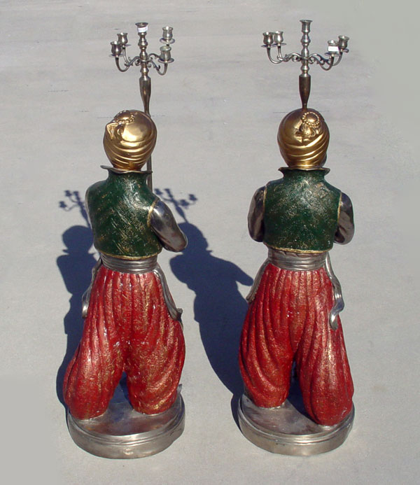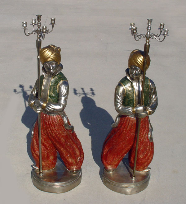 PAIR BLACK A MOOR FIGURAL FLOOR TORCHIERE CANDELABRA: 51'' h. x 16'' dia.