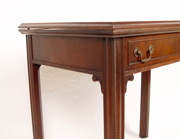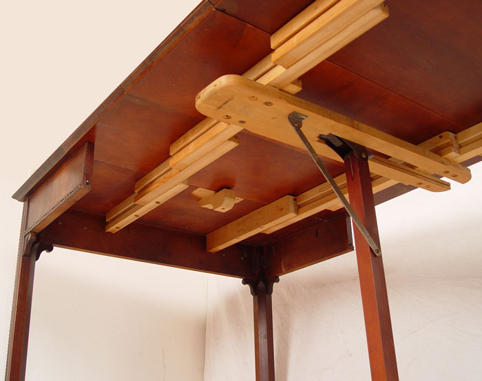 MAHOGANY WATERTOWN SLIDE EXPANDABLE TABLE: Converts from a foyer table to a full size dining table. 31'' tall x 36'' x 20'' plus three leaves. Perfect for condos.