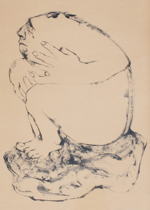 POVEDA, Carlos, (Costa Rican, 1940-): Exhibited 2 piece lot of enamels on paper to include 1) Profile of Mans Head, sight size 21 1/2'' x 18'', signed and dated '64, framed, 29 1/4'' x 25 1/4''; 2) Figure Seated, sight size 25'' x 17 1/2'', pencil signed and dated '64, marked D.C., framed, 33'' x 24 3/4''. Exhibited at the Pan American Union, Washington, D.C., 1965. From the collection of former US Diplomat and State Department official John E. Karkashian.