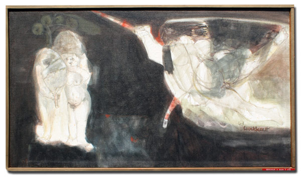 LOOCHKARTT, Angel, (Columbia, 1933-): ''Adam & Eve'', OIL/Canvas, 17 1/2'' x 31 1/4'', signed, dated '64, framed, 18 1/2'' x 32 1/4''. Sold with exhibition catalog from 1964 Pan American Union in Washington, D.C., From the collection of former US Diplomat and State Department official John E. Karkashian.